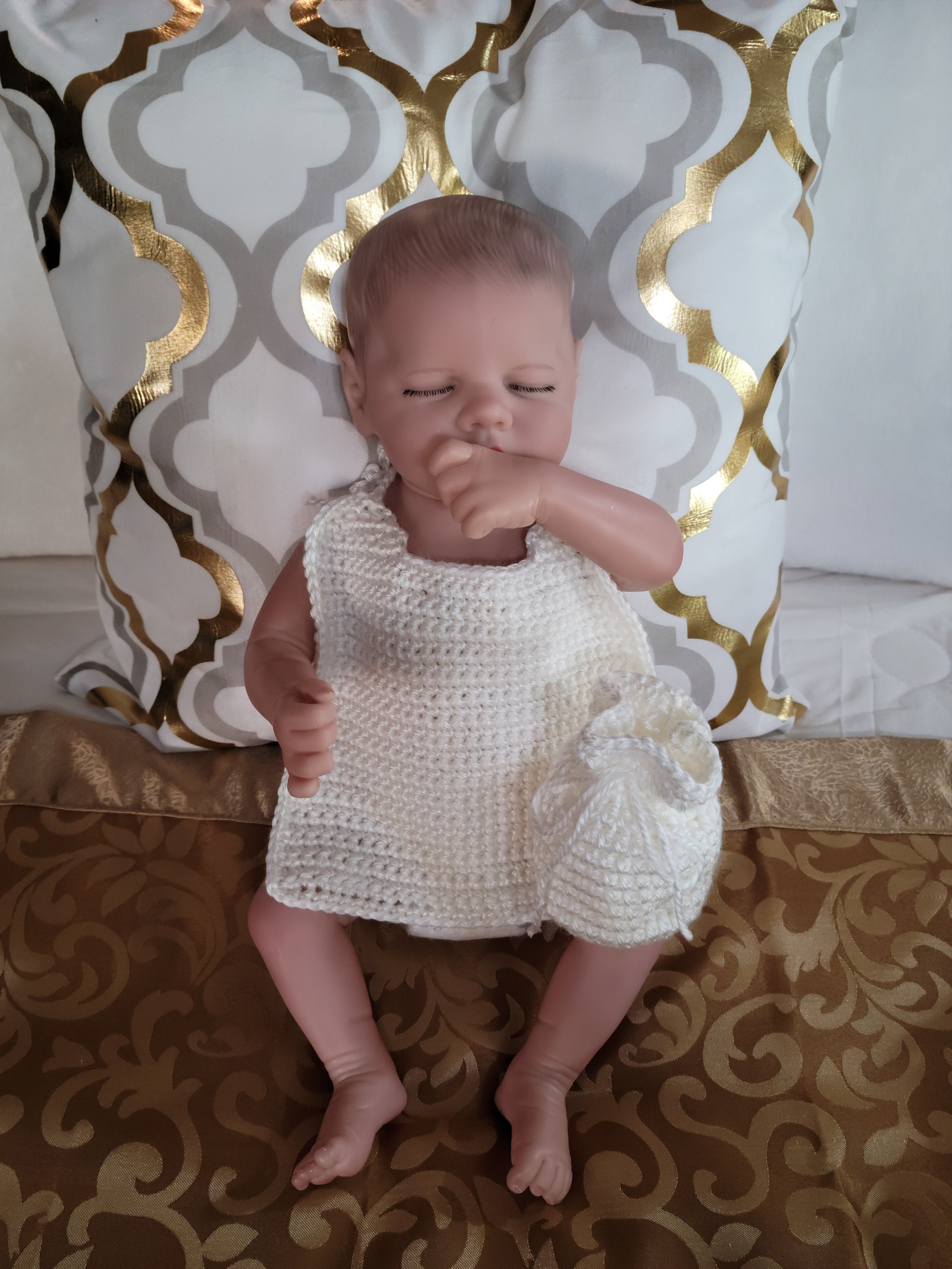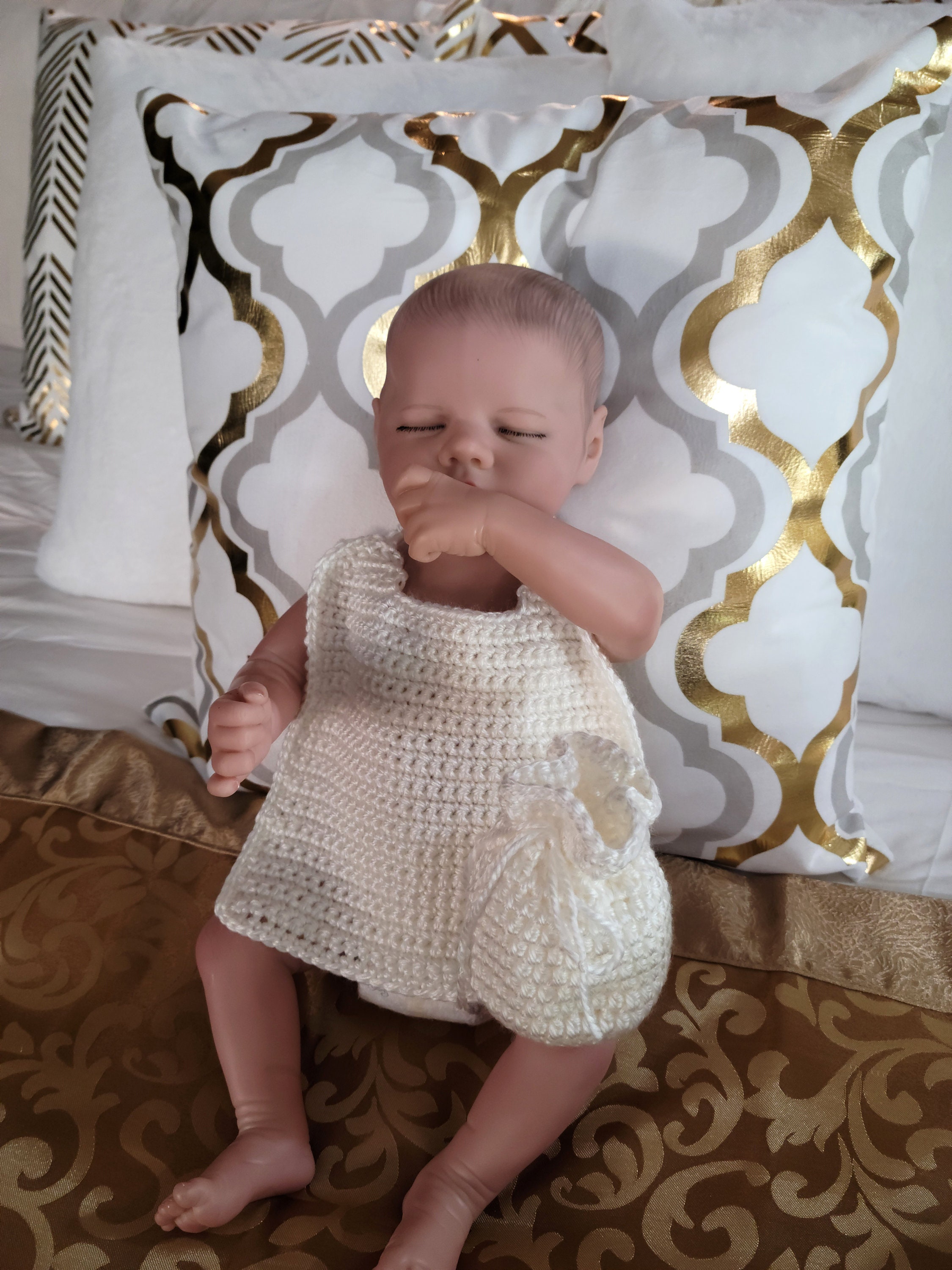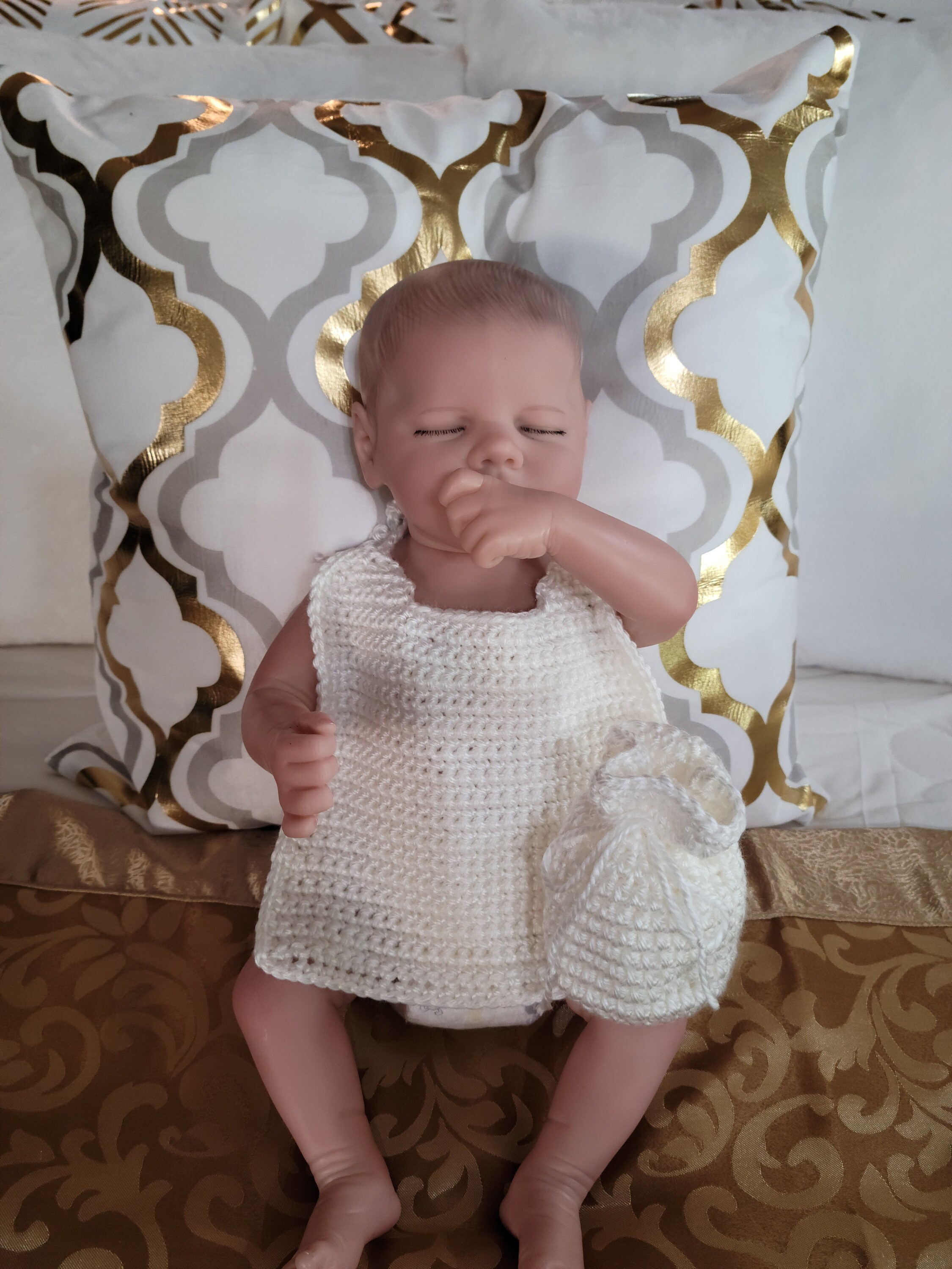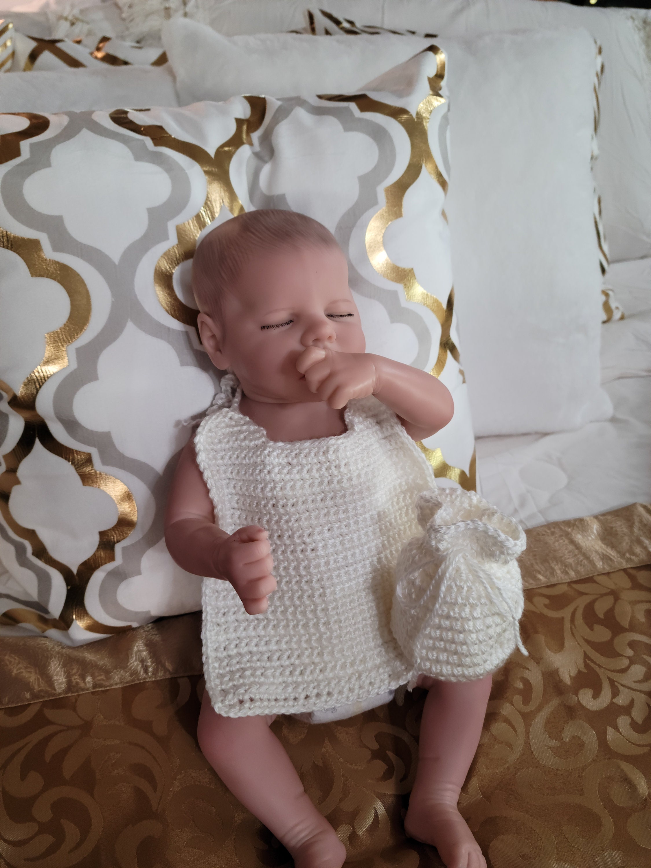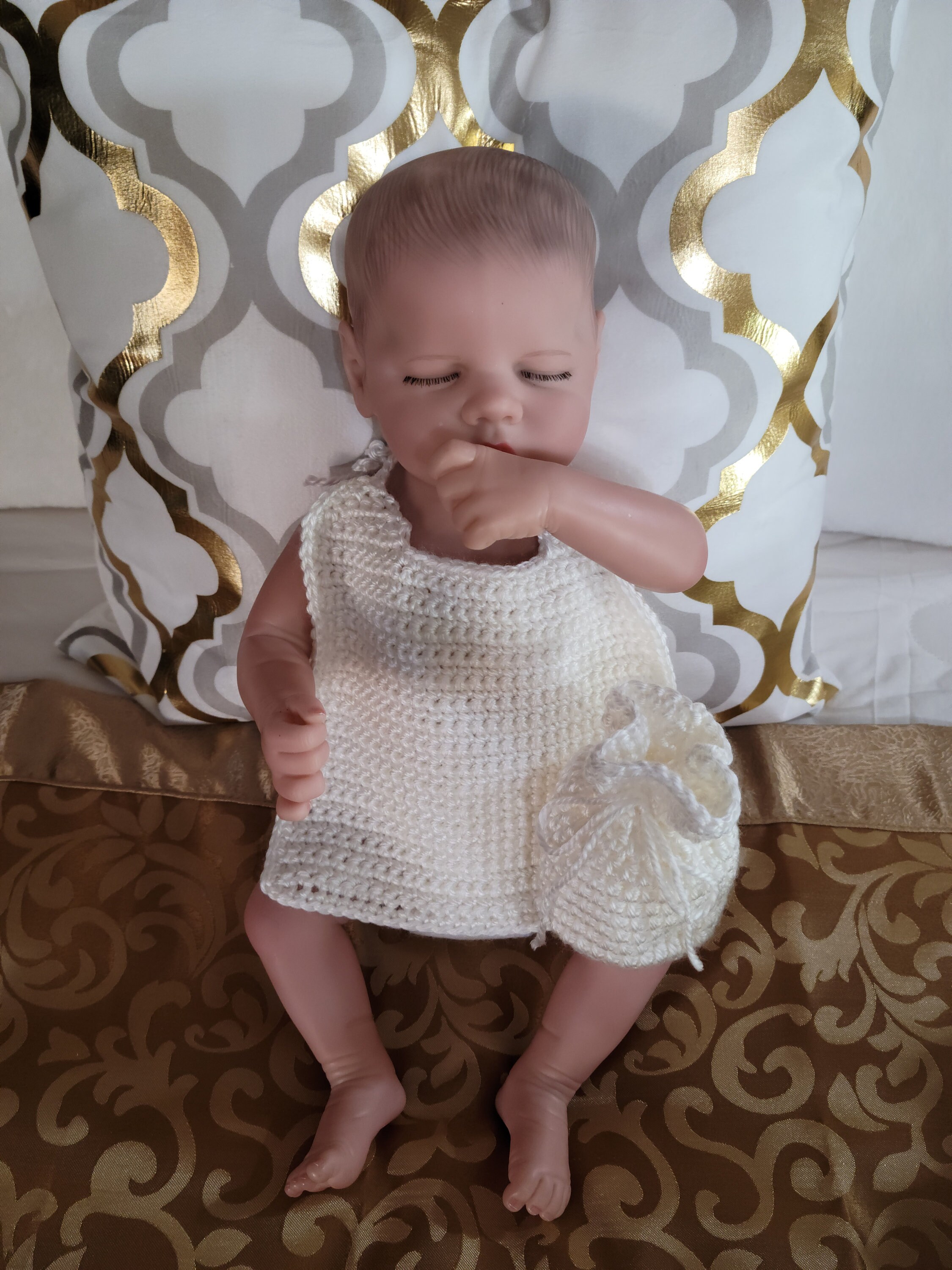 New Beginnings-Accessory-Bib-Gift Bag-Set-NB-Baby-Handmade-USA-Crochet-Single Edge-White-Acrylic-Soft-Shiny-Baby Birth-Baptism-Blessing-Gift