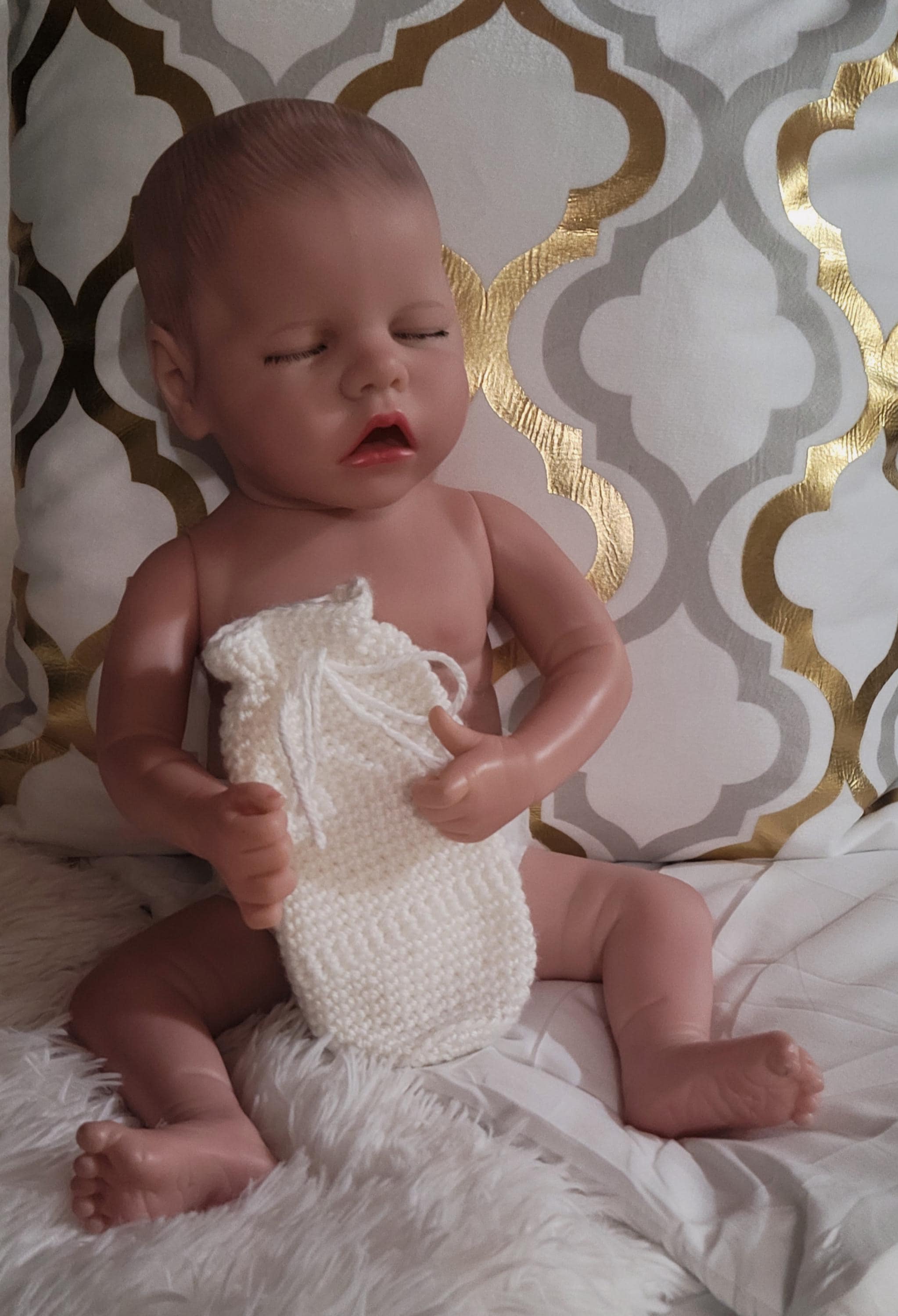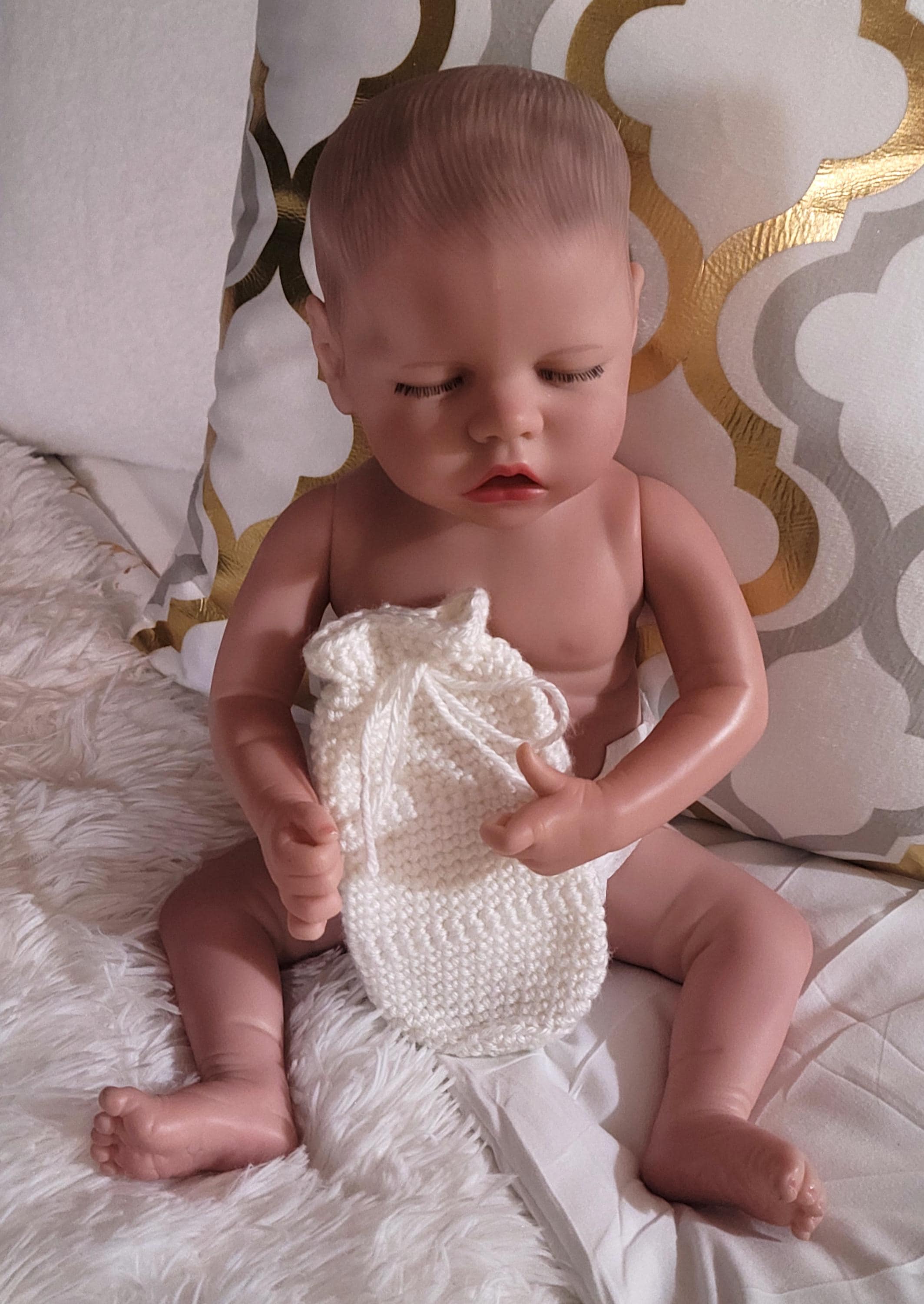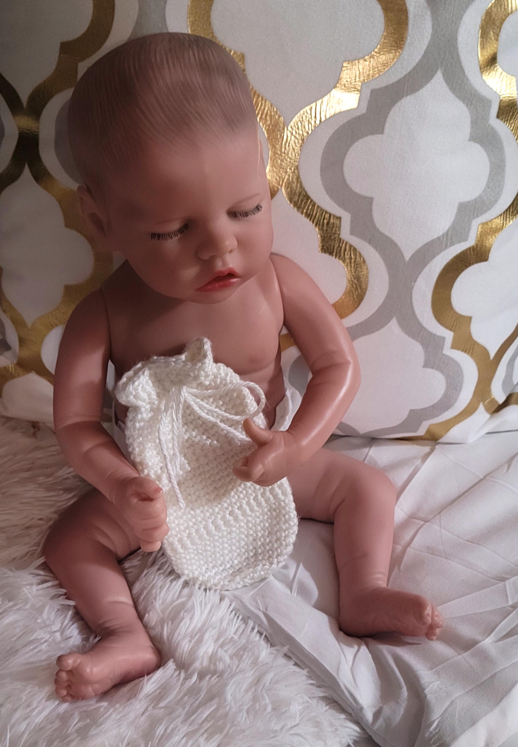 Saas-E-Co-Heavenly White-Accessory-Baby-NB-Bottle Cozy-Handmade-USA-Crochet-Single-Single Edge-Draw String Closure-White-Simply Soft-Gift