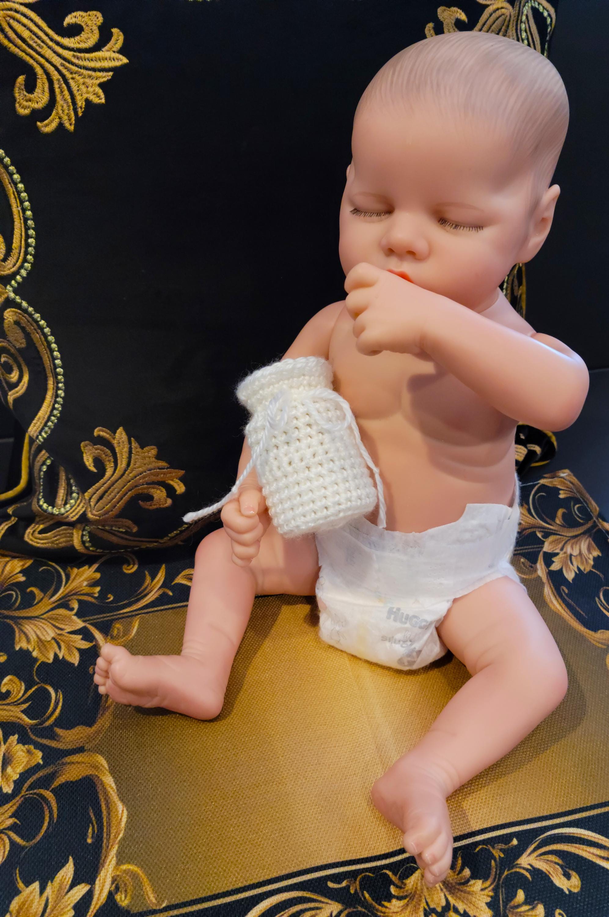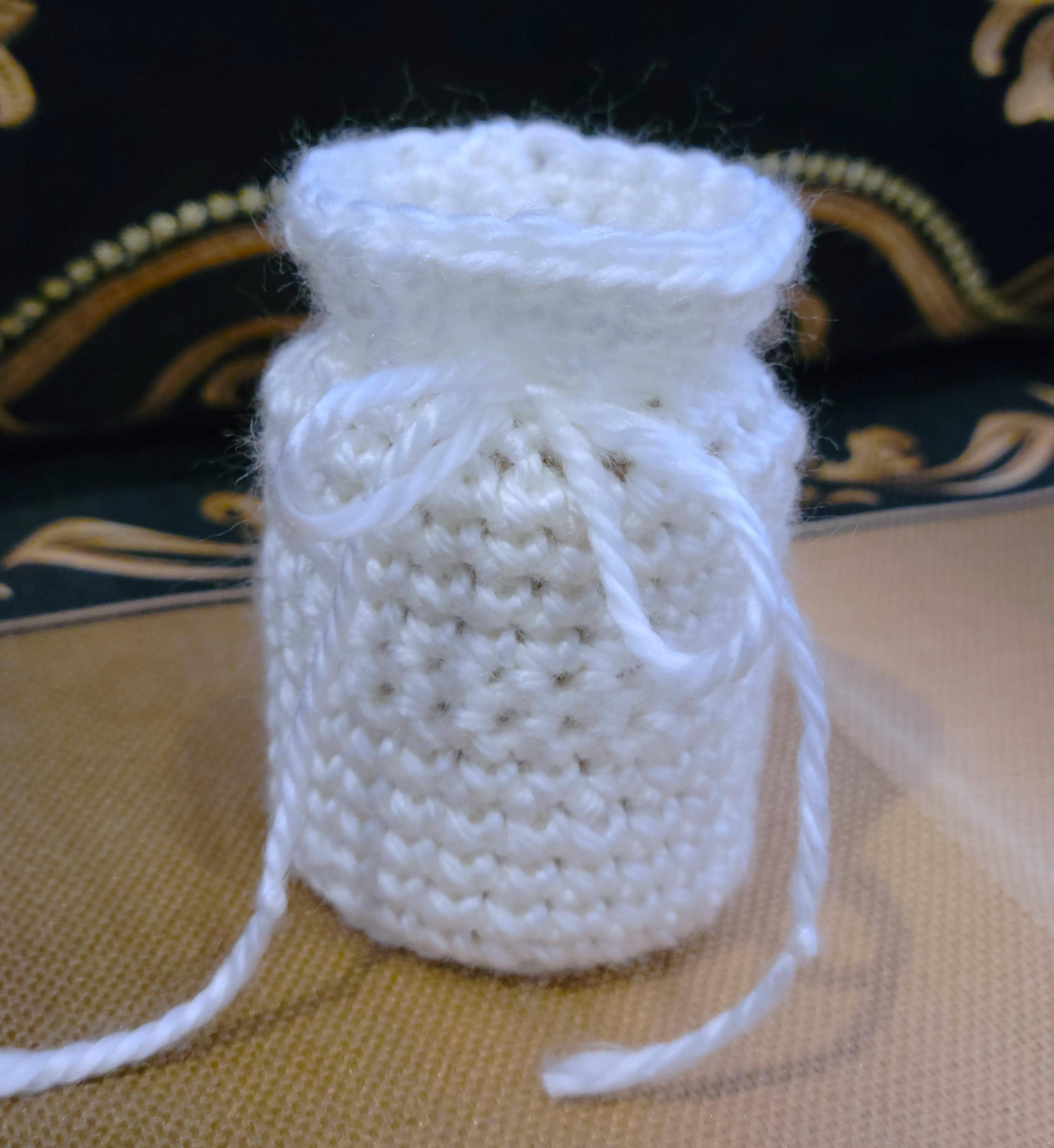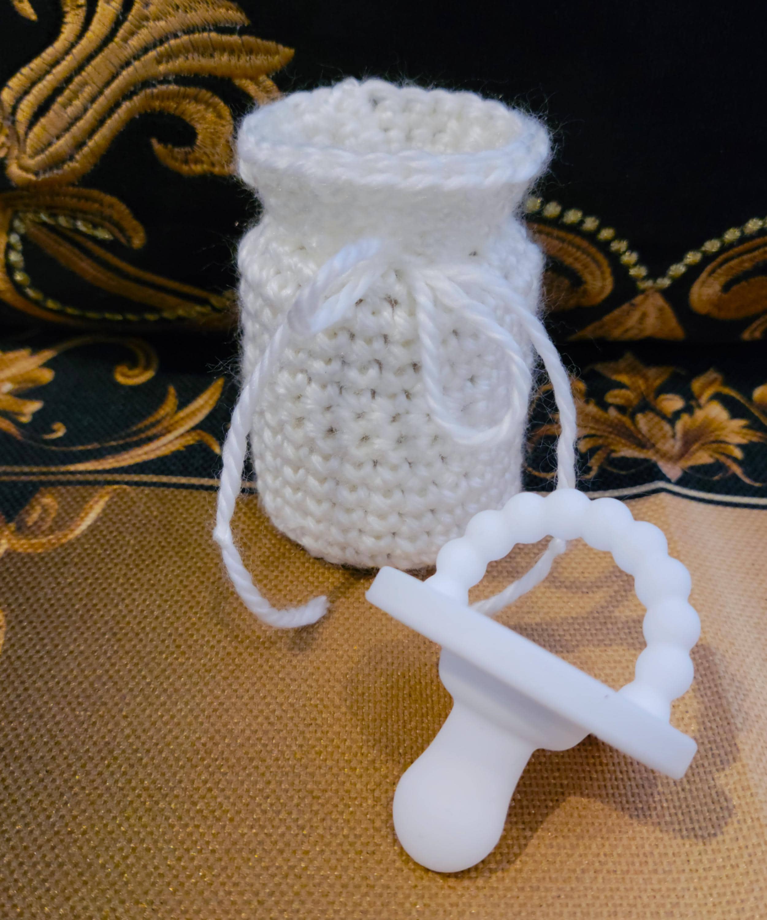 Heavenly White-Baby-Small-Accessory-Bag-Gift-Keepsakes-Product-Handmade-Crochet-Single-Simply Soft-White-Draw String-Baby Shower-Blessing