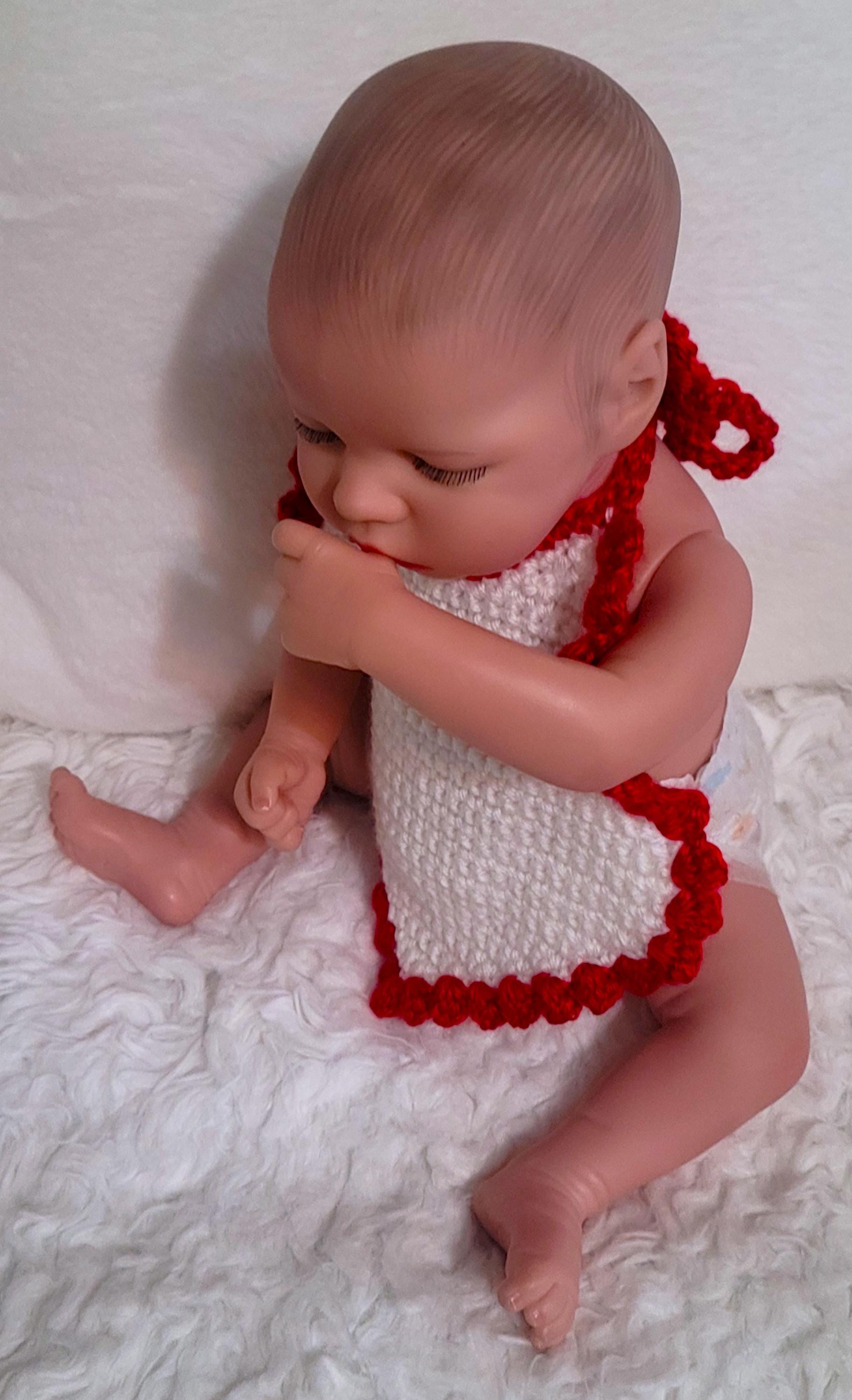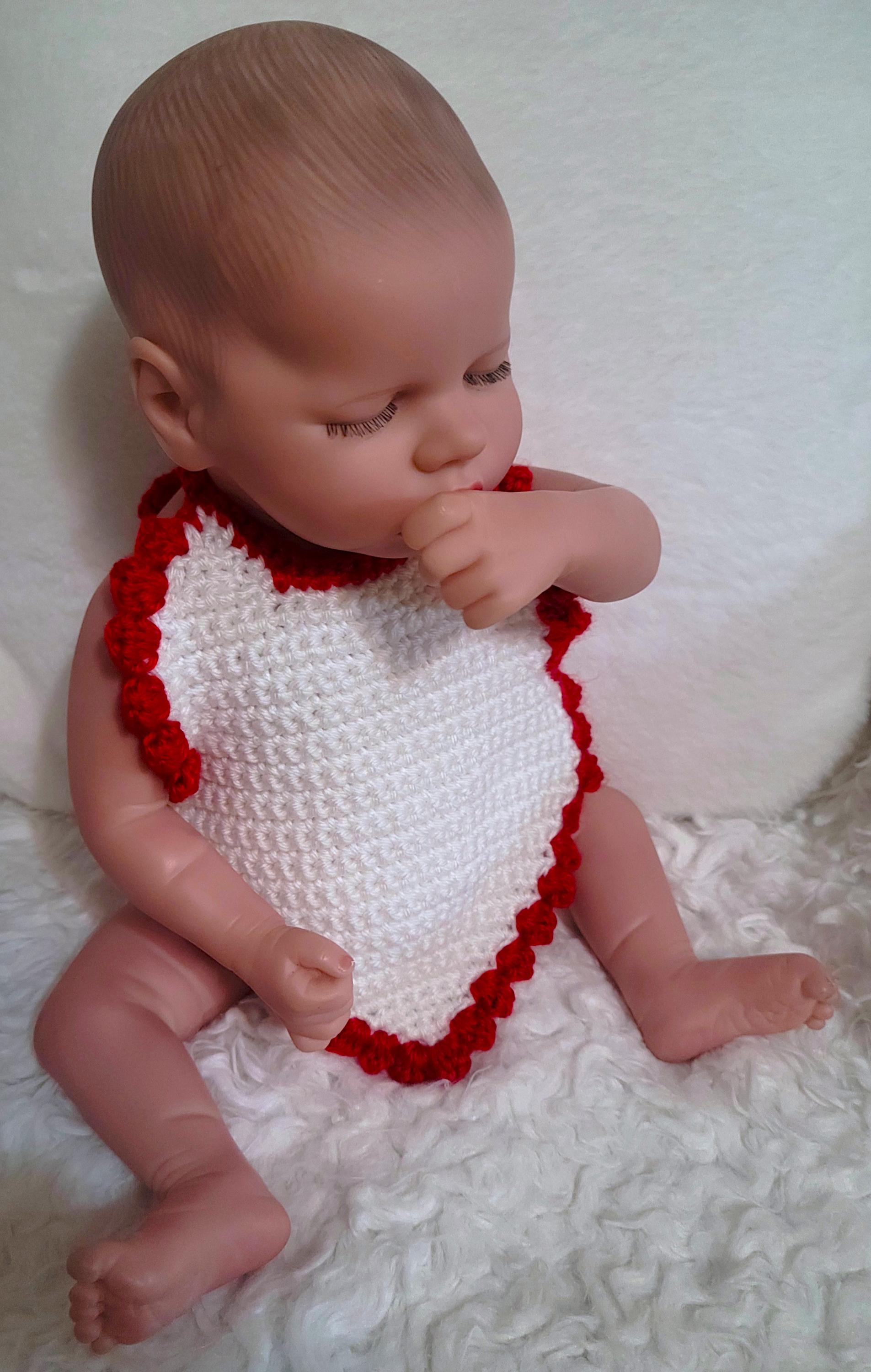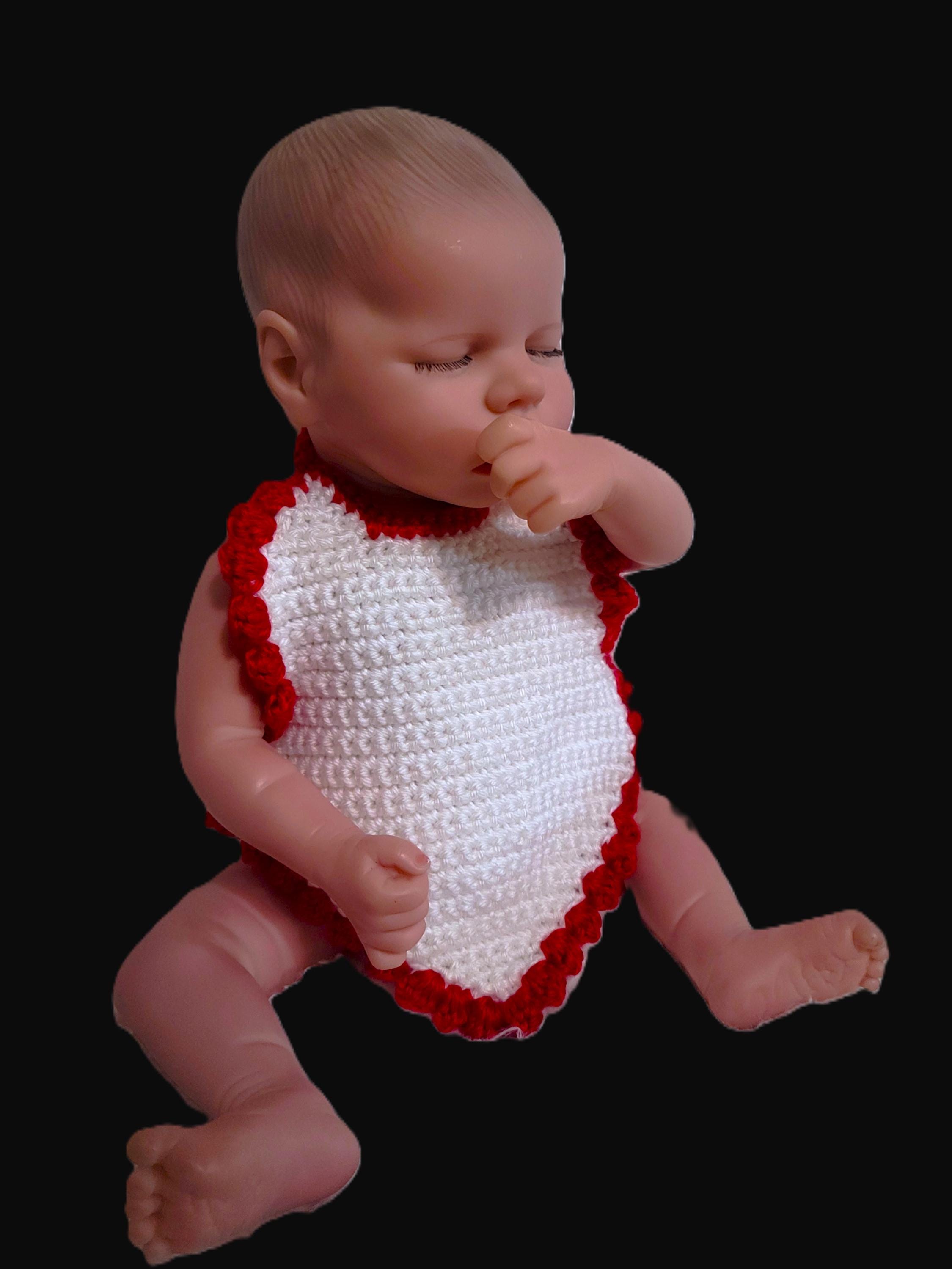Bee Patriotic-Honor & Purity-Accessory-Apparel-Baby-NB-Bib-Handmade-Crochet-Single-Shell Edge-Red-White-Baby; Birth, Gift, Holiday, Shower