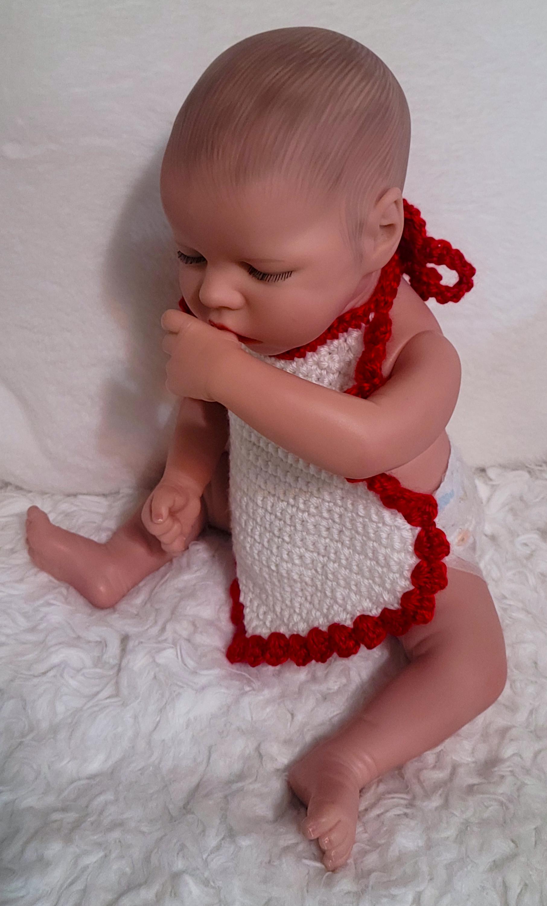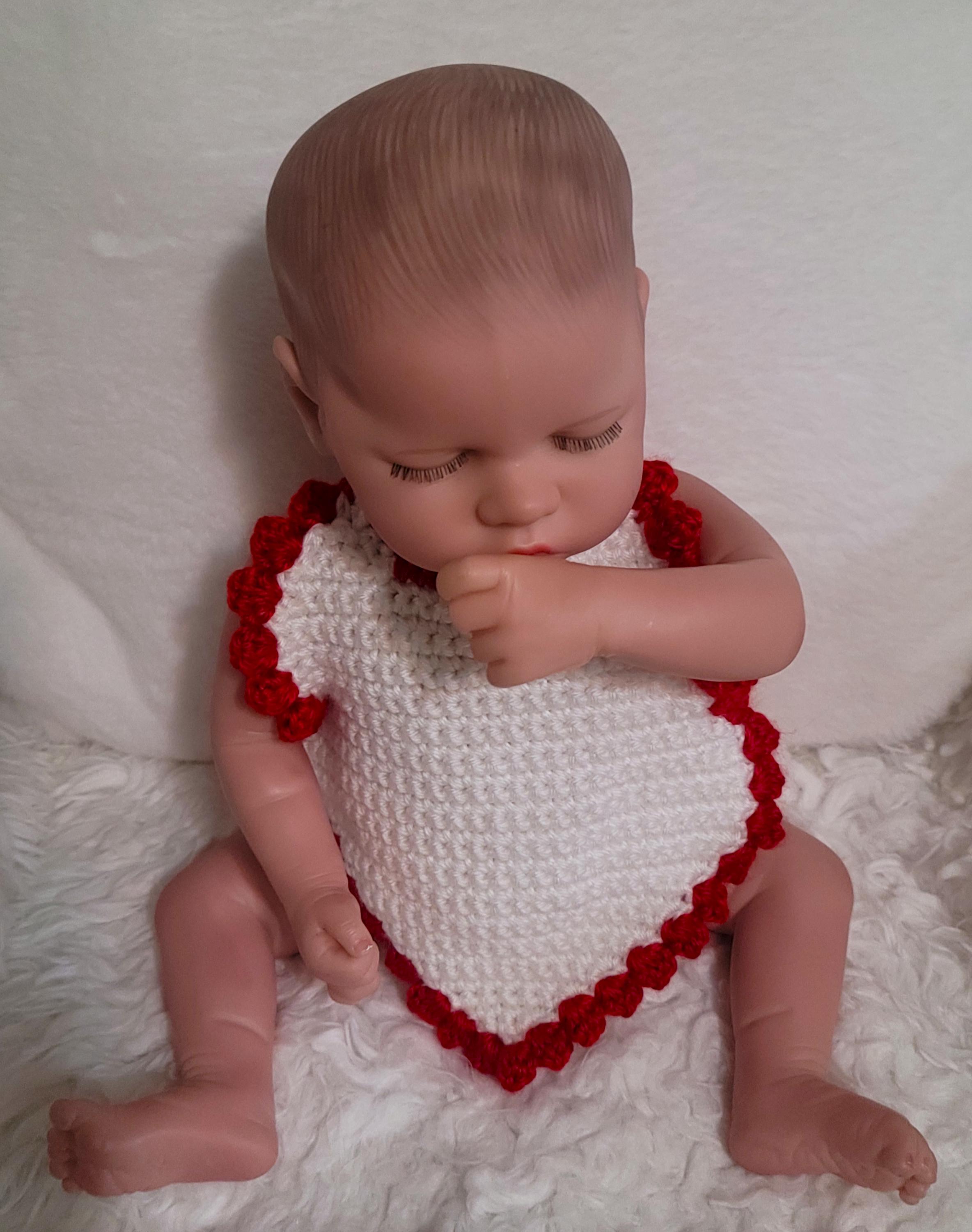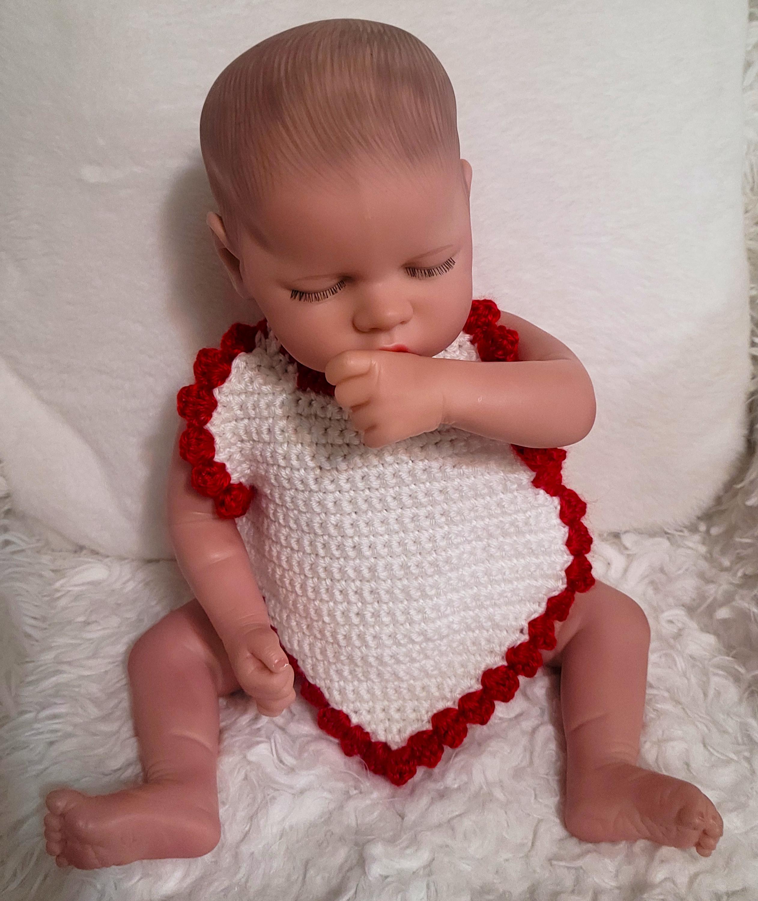 Bee Patriotic-Honor & Purity-Accessory-Apparel-Baby-NB-Bib-Handmade-Crochet-Single-Shell Edge-Red-White-Baby; Birth, Gift, Holiday, Shower